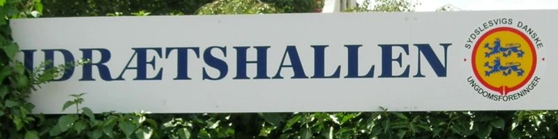 Schild der „Idrætshallen“ in Flensburg mit dem SdU Logo